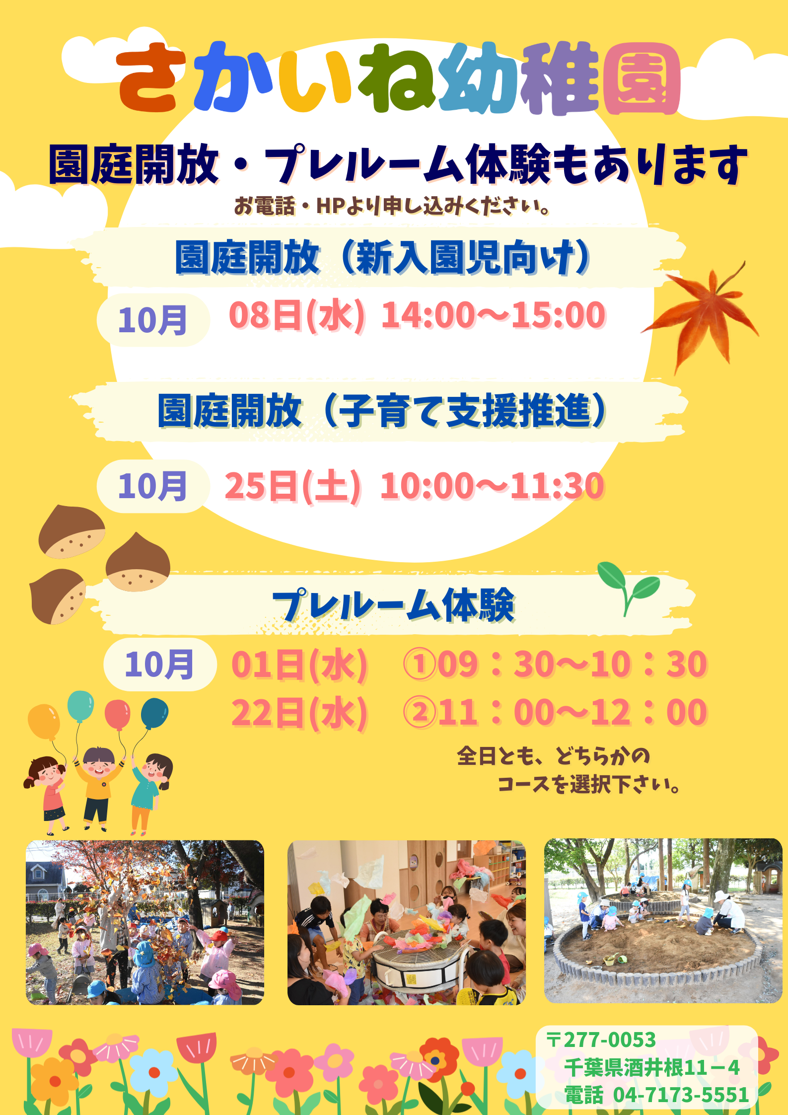 まだ、『園見学ツアー』や『園庭開放』や『プレルーム体験』を実施していますので、この機会に幼稚園の雰囲気や子ども達の様子を見に来てください♪